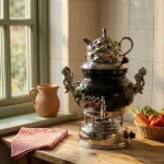 سماور گازی8 لیتر پانيذ کروم طرح سنگ یشمی (DMT) (0نفر)