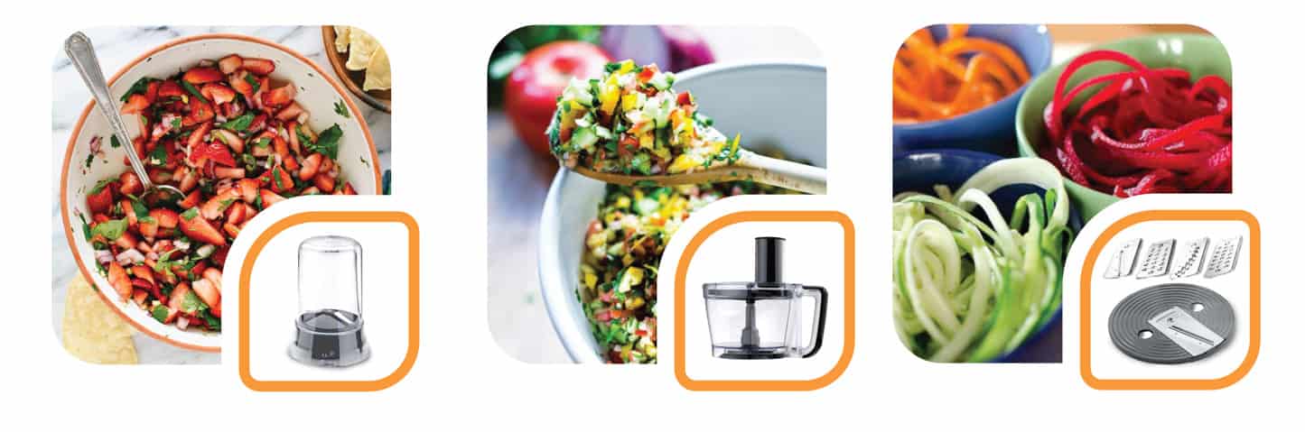 این غذاساز در واقع از چند عملکرد مختلف پشتیبانی میکند و کارکردش تنها به خرد کردن مواد غذایی محدود نمیشود. عملکردهای متنوع آن شامل خردکن برای خرد کردن انواع مواد غذایی اولیه، مخلوط کن برای تهیه انواع دسر و میکس و اسموتی و … آسیاب برای پودر کردن انواع دانهها و ادویهها و حتی سبزیجات خشک شده و …، آب مرکبات گیر برای تهیه آب مرکبات و 5 رنده با اشکال مختلف برای رنده کردن و خرد کردن مواد غذایی مختلف و .. میشود. این همه قابلیت و امکانات تنها در یک دستگاه جمع شده، تا به محصولی حرفهای و کاربردی در آشپزخانهها تبدیل شود.